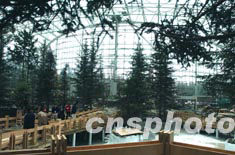 驰名中外的四川省九寨沟旅游胜地旁的甘海子,今夏八月正在森林中兴建九寨天堂国际会议度假中心。图为施工中的中心大堂保留着原生态,明年在此举行世界环境与发展论坛时,将好似林中水晶宫。中新社记者:贾国荣
