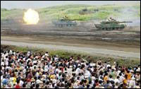 中新网8月30日电 日本陆军自卫队今天(30日)在静冈县御殿场市的东富士演习训练场进行“富士综合火力演习”。国际在线报道说,此次演习是日本陆军自卫队进行的一次最大规模的实战演习。