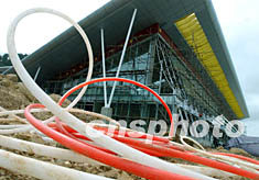 正在四川省松潘县川主寺修建安装的九寨黄龙旅游机场候机楼,为中国高原的现代化航空港,将于九月二十八日通航使用。它可停靠五架飞机,满足年六十万人次的旅客流量。中新社记者:贾国荣
