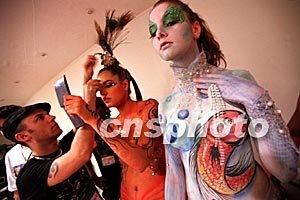图:巴西圣保罗摄影器材展上的人体彩绘表演
