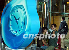 图:香港不畏台风紧罗密鼓为钟表展开幕布展