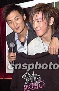 歌星麦浚龙9月3日在香港出席余文乐全新个人专辑《LOST AND FOUND》发布会,麦浚龙发布会向余文乐送上T恤助庆。作者:邓庆乐