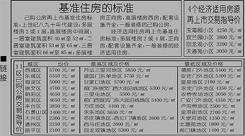 中新网9月5日电 北京市国土房管局昨天首次公布已购公房和经济适用房再上市的交易指导价格。