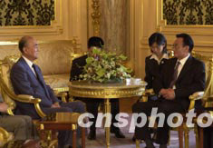 正在日本访问的全国人大常委会委员长吴邦国九月六日在他下榻的东京迎宾馆会见了日本前首相中曾根康弘。作者:王健