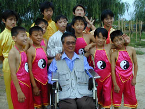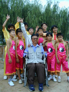 沧州林冲武术学校校长韩志超虽然身为高位截瘫的残疾人,但弟子满天下。华夏时报图