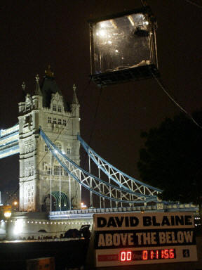 这也是布莱恩首次在美国以外的地点举行表演,他曾经在一根30.5米高的柱子上站立35小时,以及在一大块冰内封冻3天,那两次的表演地点都在纽约。
