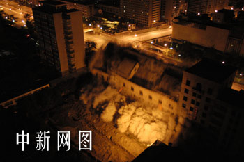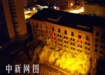 爆破中的中华全国总工会大楼。中新社记者 邹宪摄