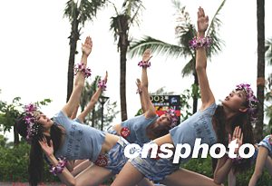 九月的海南天气变化无常,参加2003年新丝路中国模特大赛的众多佳丽,为了能在比赛中取得好成绩,抓紧时间进行练习。八月九日,参赛模特在小雨中的海边练习瑜珈。中新社记者:盛佳鹏