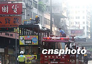 香港轩尼诗道十日早上发生一起交通意外,一辆西行电车途中突然冒烟,电车服务一度受阻。作者:潘索菲