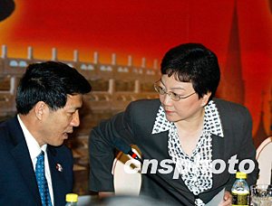 邓小平之女邓榕(图右)以中方副主席身份出席会议。中新社记者:满会乔