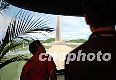 科博会之数字奥运技术装备展首次向大众展出,图为观众在观看奥运场馆建设三维仿真系统。中新社记者:张宇
