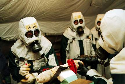 相关报道:冷冻切割包装 侵华日军河北遗弃毒弹已挖出21枚 (2003-09-12 21:04:17)