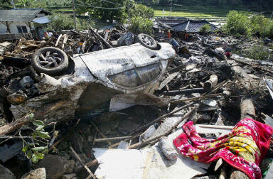 台风带来了大量降雨,并导致韩国出现房屋倒塌、树木及电线杆折断、火车出轨、山体滑坡和大规模的停电,并有大批公路及田地受淹。