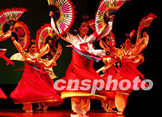 图:韩国扇舞为丹东鸭绿江国际旅游节助兴