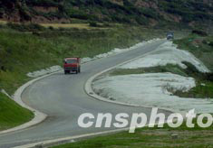 中国在著名观光胜地四川省九寨沟新建的机场,即将在九月二十八日通航。畅通的机场高原公路两边采用薄膜养草术保护环境。中新社记者:贾国荣