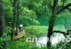 中国又一处集九寨黄龙山水风光与一体的旅游新地----四川省九寨天堂神仙池,将在今秋黄金假期开放游览。中新社记者:贾国荣
