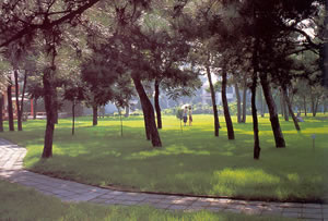 北戴河海滨背依翠黛的青山。壁立于海边的东西联峰山,海拔400米,苍松翠柏,郁郁葱葱,清涧流水,幽径曲折。这里山峦起伏,群山相互连贯,所以称联峰山。又因这座山形似莲蓬,又称莲蓬山。沿山涧幽径,攀上联峰山,站在顶峰“望海亭”上,观览沧海,但见烟波浩渺,白浪层层,气象万千。