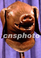 图:流失文物清圆明园猪首铜像在港展出
