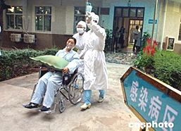 为今冬明春SARS防治做准备,广州华侨医院十八日下午进行SARS应急模拟演练。作者:柯小军