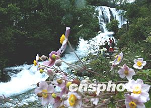 中国旅游名胜四川省九寨沟今秋山泉旺盛,在青山绿林间形成处处白练水景,为十月黄金假期游览重现多年少有的乐趣。中新社记者:贾国荣