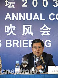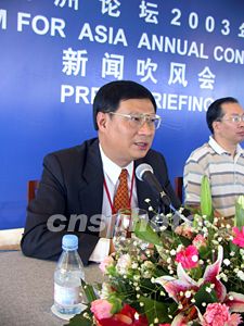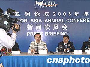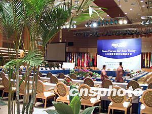 中远集团投资建设的博鳌亚洲论坛永久会址——博鳌亚洲论坛国际会议中心,将于二十二日揭幕。该中心位于博鳌东屿岛,建筑面积为三万七千平方米,共有大小十六个设施先进的会议厅,主会场可以容纳二千五百人。这是即将在明天召开“今日博鳌亚洲论坛:回顾与展望圆桌会议”会场。中新社记者关向东摄