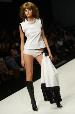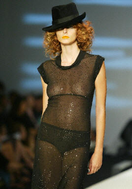 9月21日,在伦敦2004春夏时装周上,模特现场展示了设计师Boudicca设计的时尚透明装。