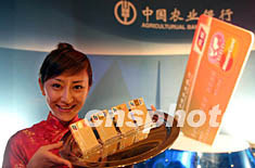 九月二十二日,中国农业银行在北京举行发卡仪式,推出其信用卡产品——中国农业银行金穗卡(贷记卡),持卡人最高可获得五万元人民币的授信额度,无须预先存款即可在规定额度内消费、取现。中新社记者:盛佳鹏