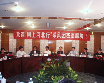 中新网9月22日电 “网上河北行”全国知名网络媒体采风团成员今日上午参访了河北保定市宝硕集团等几家全国大型企业后,下午赶到河北廊坊参加廊坊市政府召开的“网上河北行”廊坊市情新闻发布会。在会上廊坊市长吴显国强调保定要建设成为“生态环保之城”、“科技教育之城”、“会展旅游之城”。