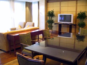 酒店每个房间均有独立的更衣室,自动红外照明感应,自动恒温空调,可以根据客人的习惯自动记忆亮度及温度,柚木厚重的家俬与三十多频道多语言卫星电视、宽带上网接口实现了传统与时尚的统一。客房内法式浴缸与卧室之间以软帘相隔断,拉开软帘推开阳台,就是南海咸湿滋润的空气,客人可以边沐浴边欣赏博鳌水天一色的美景。