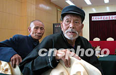 九月二十五日,河南郑州,两名花冈事件的河南籍受难者在等待花冈和平友好基金会发赔偿金。从一九四四年起,共九百八十六名中国人被强掳到日本秋田县花冈町做苦力,其中四百八十一名劳工命丧日本。自一九八九年起,经过幸存者十余年的艰苦斗争,日方同意一次性赔偿五亿日元。目前找到四百六十四名花冈受难者中,河南籍30人。全部赔偿工作将于今年十二月三十一日终止。作者:慎重