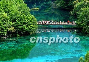 四川省旅游名胜地九寨沟今年因山水旺盛而万物茂盛,重现多年罕见的孔雀蓝山水景色,使今秋旅游黄金季节魅力无比。中新社记者:贾国荣