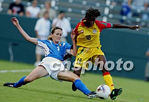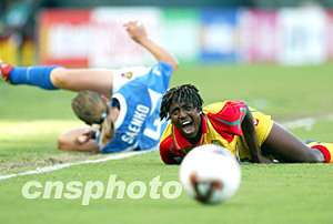 美国当地时间9月25日16点15分,2003年第四届女足世界杯D组加纳队对俄罗斯队的比赛在美国洛杉矶南部卡森的The Home Depot Center体育场举行。上半场俄罗斯队1比0领先下半场俄罗斯队扩大战果,最终以3比0获胜。作者:刘占坤