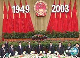 温家宝总理在招待会上讲话。他说,今年是中国人民在中共十六大精神指引下阔步前进的一年,是经受严峻考验并取得重大胜利的一年。