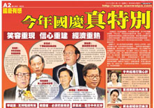 中新网10月1日电 今天出版的香港文汇报以《今年国庆真特别》为主题作了综合报道。报道说,今日是国庆节。年年国庆年年庆,而今年的国庆好特别:今年以来,中央政府不断送大礼“挺港”——由在沙士袭港高峰向特区送上保护衣物及装备,到放宽内地居民以个人游身分来港旅游,再到内地与香港更紧密经贸关系签署。一系列的支持,带动已连年不景的香港经济逐步复苏,市民脸上重见笑容。