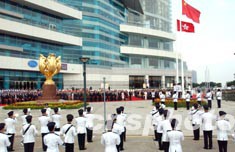中新社香港十月一日电(记者方青木)香港百多个团体一万多名市民今日早上参加了“国庆欢乐大巡游”,通过各种表演活动,表达他们对祖国的祝福,为国庆节日的香港增添了许多喜庆气氛。据了解,这是香港回归后,首次最大型、最具特色及最多人参与的巡游活动。
