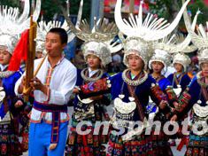 贵州省凯里市国庆期间举行少数民族歌舞演出,庆祝国庆佳节。中新社记者:宋吉河