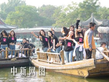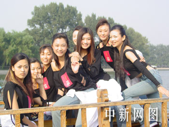 中新网10月5日电 今天(5日),人潮如织的北京什刹海,迎来了一批“特殊”的靓丽游人,这就是凤凰卫视“2003中华小姐环球大赛”入围的50名佳丽。