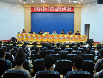 昨日,来自中国社会科学院的知名人文学者周永琴,应太阳星城爱心之旅采访团地邀请,不辞远行赶赴合肥工业大学,在轻松的氛围中,为充满爱心的大学生们进行了一场声情并茂的演讲,不时引起一阵阵热烈的掌声。