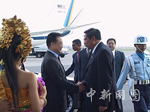 中新网10月6日电(记者齐彬)中国国务院总理温家宝于当地时间6日下午2时35分抵达印尼巴厘岛出席第七次东盟与中日韩(10+3)领导人会议、东盟与中国(10+1)领导人会议及第五次中日韩领导人会晤。