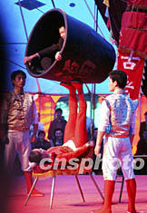 “十一”长假期间中国杂技之乡吴桥迎来一年中旅游黄金时节。在汇聚各路杂技高手的“杂技大世界”内,一位纤弱女子足蹬二百公斤的重物旋转表演,令观众惊叹不已。据悉,当地三分之一财富来自杂技旅游收入。中新社记者:王丽南
