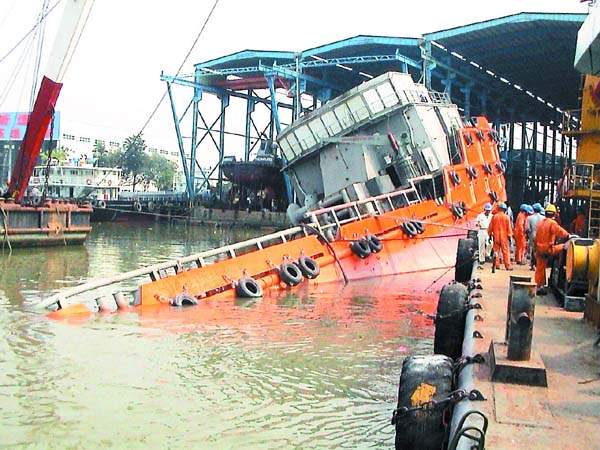 根据船舶资料显示,该船空船重量达到1120吨,因为沉没在珠江内河,大型打捞船舶设备无法进入,给打捞工作造成很大困难。根据可用的船舶设备情况,打捞局采用稳定难船、封舱抽水、使难船自浮的整体打捞方案。首先用300吨浮吊及潜水作业母船稳定住沉船浮态,对其进行必要的加固,防止其继续下滑和左倾加大;慢慢移开左舷的浮船坞,然后水下封堵有关的孔盖、海底阀及主甲板上的工艺开口,然后用潜水泵抽出船内积水,使难船自浮,调整浮态,现场交船。(幸琦昕许力夫张健文)
