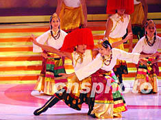 在香港庆祝中华人民共和国54周年国庆文艺晚会上,一台融合中西音乐、舞蹈、歌唱、军操及武术表演的综艺节目,令观众目不暇给。图为精彩纷呈的舞蹈《春回大地乐全城》。作者:洪少葵
