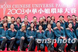 从全球范围内征选出的50名华人佳丽十月九日亮相北京,准备参加十月十九日举行的2003中华小姐环球大赛准决赛,其中12名脱颖而出的选手将于十一月八日在香港参加总决赛。中新社记者:张宇