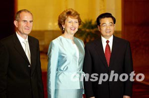 中新社北京十月九日电(记者 朱大强)中国国家主席胡锦涛今天在人民大会堂与爱尔兰总统玛丽·麦卡利斯举行会谈,双方就两国关系和共同关心的问题交换了意见。