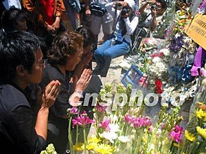 10月13日,巴厘岛爆炸案的幸存者和死难者的亲属们举行仪式,为死难者祈祷。2002年10月12日,印尼巴厘岛发生恐怖袭击爆炸案,共有二百余人在那次事件中遇难。Ic/cnsphoto摄