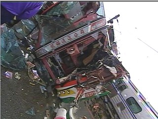 中新网10月14日电 今天上午台北县莺歌东莺里平交道发生游览车与台铁电车相撞重大事故。而在去年7月20日,同样在东莺里平交道也有拖板车与“自强”号相撞事故,而这两起重大平交道事故,台铁装置的紧急按钮都因民众不清楚而未及时激活。