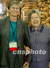 中国国务院副总理吴仪十五日在北京人民大会堂会见联合国儿童基金执行主任贝拉米。中新社记者:毛建军