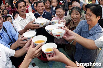 中新社福州十月十六日电 题:黄春平乡亲欢呼“神舟”五号飞天