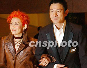 2003年万宝龙国际艺术赞助大奖十月十七日在香港举行颁奖仪式,香港明星刘德华、特别嘉宾吴君如出席颁奖仪式。中新社记者:钱兴强