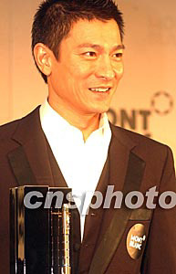 2003年万宝龙国际艺术赞助大奖十月十七日在香港举行颁奖仪式,香港明星刘德华荣获大奖。中新社记者:钱兴强